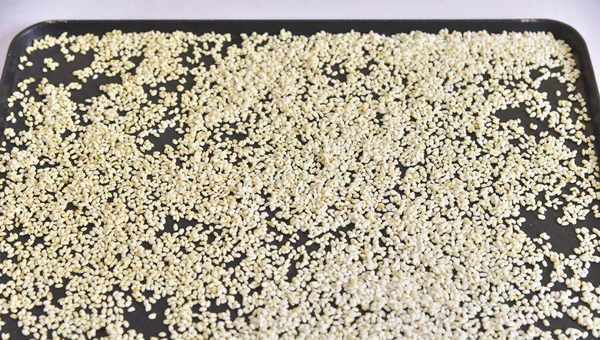 1.將大米淘洗幹凈吸幹水分,鋪入烤盤中,放入預熱好的烤箱,200℃烘烤10-15分鐘,烘烤至微微變黃取出,晾涼;