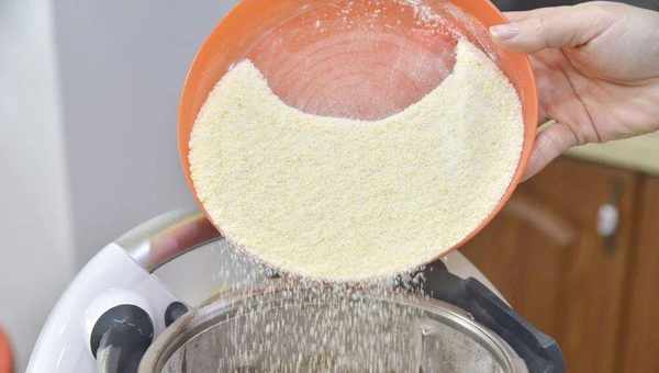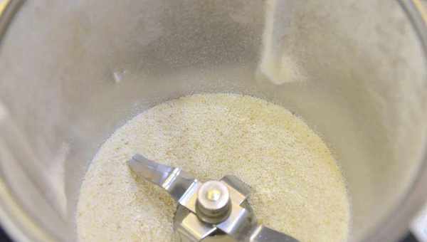2.將冷卻的大米倒入小美鍋中,以10,秒鐘/速度7打碎,倒入碗中備用;