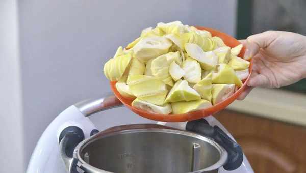 1.將食用油和洗凈切滾刀的鮮筍加入小美主鍋中,蓋上主鍋蓋和量杯蓋,以10分鐘/V檔/反轉/速度小勺烹煮;