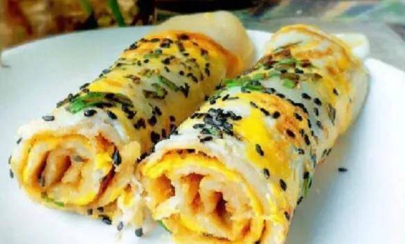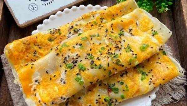 3:待芝麻和蔥花粘固在蛋液上時,翻面