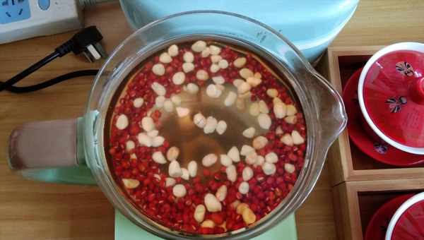 3. 泡發的紅豆,花生煮5分鐘