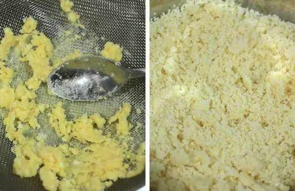 拌勻後的綠豆泥過篩(篩網孔洞不要用太細小的)。