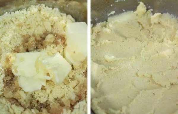 過篩後加入無鹽奶油、黑麻油,混合拌勻。