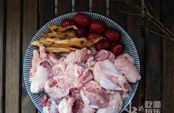 1. 土雞肉提前用清水浸泡掉血水,沖洗幹凈;玉竹與紅棗用清水沖洗幹凈。
