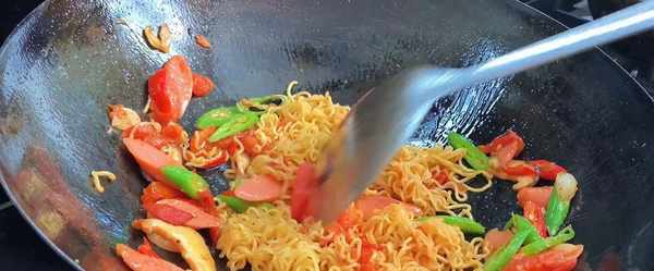 因為所有食材都是簡單易熟的,所以都不需要炒制太久,大概炒制1分鐘的時間,就可以進行調味瞭。我們加入一丟丟的食用鹽,因為方便面裡面本身已經含有鹽瞭,所以食鹽要少放點;再加入一點點的生抽,生抽也自帶咸味,所以下手一定要輕;再來一點蠔油,給我們的美食提提鮮。調料都加入後,把它們充分地翻拌均勻,最後一步就是放生菜瞭,翻炒個三四下就可以出鍋瞭,如果你喜歡吃脆口的生菜,可以不用翻炒,直接出鍋,把它裝入一個你喜歡的盤子裡,這樣可以讓你心情更加美麗喲。一盤炒方便面就這樣完成瞭,按照小編這個做法,就不是大傢口中的“垃圾食品”瞭,葷素均衡搭配。而且面餅放到鍋中蒸一下,就可以減少方便面的油脂,吃起來更加的健康。
