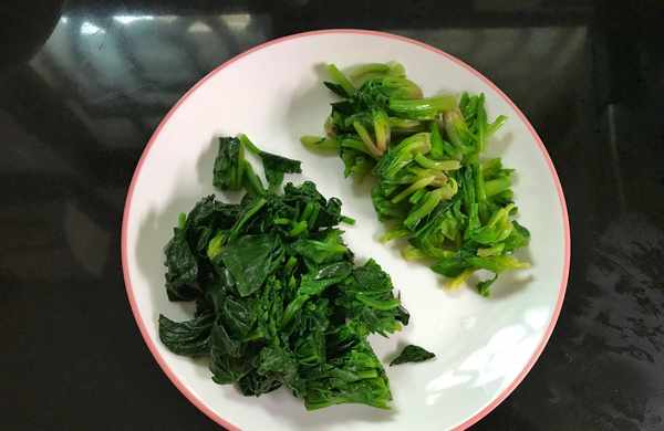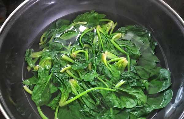 菠菜中草酸含量比較高,一定要焯水後再烹飪,焯水可以去掉菠菜中的草酸和澀味,焯過水的菠菜一定要過下涼水,因為焯出來的草酸還粘附在菠菜葉片上,隻有過涼水後才能徹底去除,焯水的時候可加少許鹽,顏色看起來也會更翠綠。