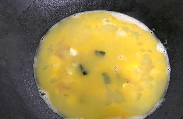 8、再把處理好的皮蛋塊放入鍋中。