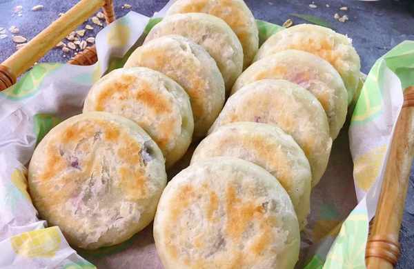 紫薯酥餅表皮酥脆,內裡滿是香甜的紫薯餡,咬一口酥到掉渣,甜而不膩,吃完手有餘香,別老是是包子、油條瞭,換個口味吧。