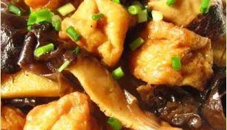 ②鍋中加油,燒熱,放入薑片炒香,下入豆腐泡、黑木耳、高湯燒10分鐘,加鹽、味精、醬油、胡椒粉調味,淋入水淀粉勾芡,炒勻裝盤,撒上蔥花即可。