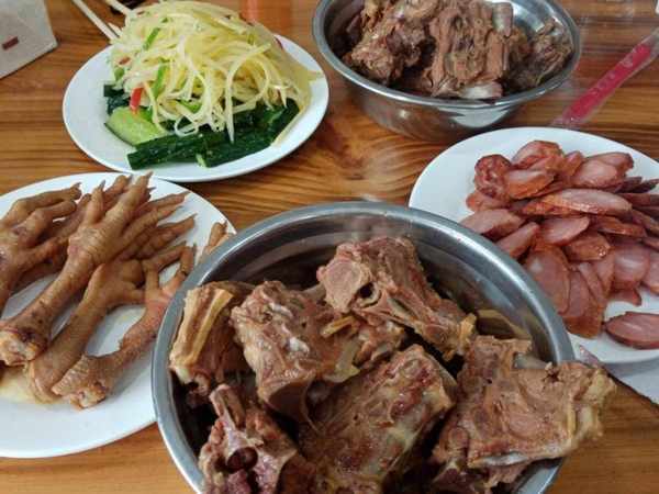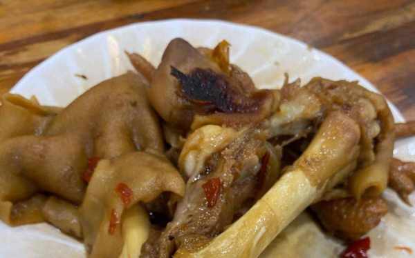 店裡除瞭板面還有不少的美食可以添加,羊蹄賣10元一根,鹵得香糯軟爛,滿滿的膠原蛋白是許多女顧客的最愛,鹵雞腳是論個售賣的,色澤紅潤,肉質飽滿,香香嘴巴也是一種享受;她傢還準備瞭羊蠍子,也是羊脊骨,肉不多,啃著很香,都知道貼骨肉最香。