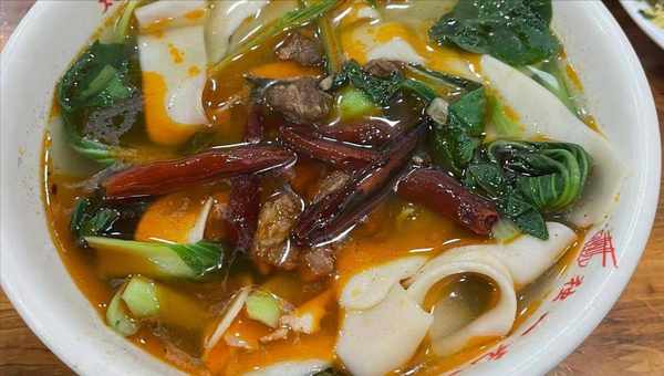 做一碗好吃的板面離不開一勺香氣濃鬱的辣椒油,老板在辣椒油上花費瞭心思,下足瞭真材實料,純正的羊板油先剁碎然後下鍋熬制,期間加入香料一起熬制,然後再下入辣椒熬制,辣椒的辣味和香味和羊肉相融合,味道變得濃鬱,簡單的一勺便能讓板面吃起來更香,越吃越有味。