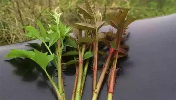 刺桿也是我們小時候經常吃到的。顧名思義,刺桿身上帶刺,其實就是野薔薇的幼株。放學路邊,或者跟著媽媽去種田、挖土時自己在旁邊田壙上尋找刺桿,挑那種節距遠的、最好是白色外皮的刺桿,折下嫩苗,這種就會清脆香甜;而節距近,外皮呈紅色的一般都有點苦。