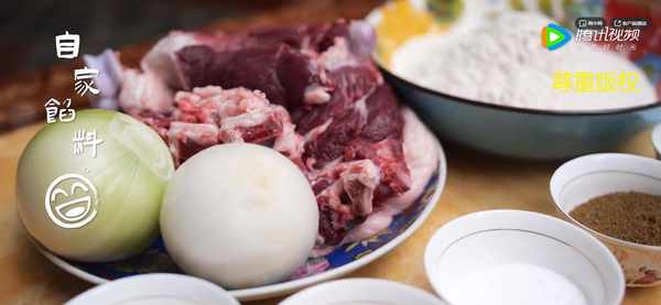 我們先來看看水煎包的配料:肥瘦搭配的牛腩是比較便宜的牛肉產品,白洋蔥是另外一個主要食材,價格也不高。我們在準備餡料之前,即使是自傢吃,牛肉和洋蔥的配比也應該至少維持在1:1的程度,因為牛腩太多並不利於後期的口味呈現:過多的牛腩在其烹飪過程中可能還會發柴。在配制餡料口味的時候,先用食用油放入花椒炒香,然後過濾掉花椒粒單取香油,再加入五香粉、生抽、老抽、糖作為底味,之後加入小牛腩粒和白洋蔥末進行攪拌。攪拌的時候記得往一個方向,不要來回,這會明顯影響餡的品質。
