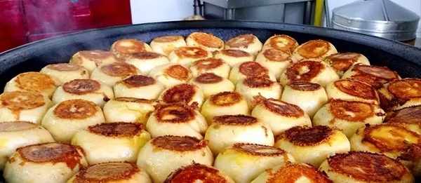 紀錄片《排隊小吃》裡介紹的水煎包,大小相當於我們熟悉的牛肉煎包的60%。做成這個樣子主要是為瞭方便湯汁入味,其售價更是低到一元一個,我想一個成年人吃十個肯定飽瞭。這麼價廉物美的好東西,難怪顧客要排隊等候!