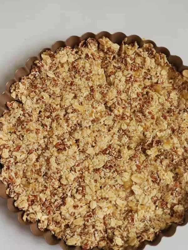 2.模具我用的活底的派盤,親們用別的要抹油。把燕麥鋪在烤盤上。