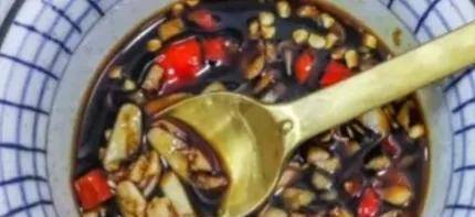 3、取一個小碗,加入大蒜,小米椒,倒入生抽,陳醋,一點白糖攪拌均勻