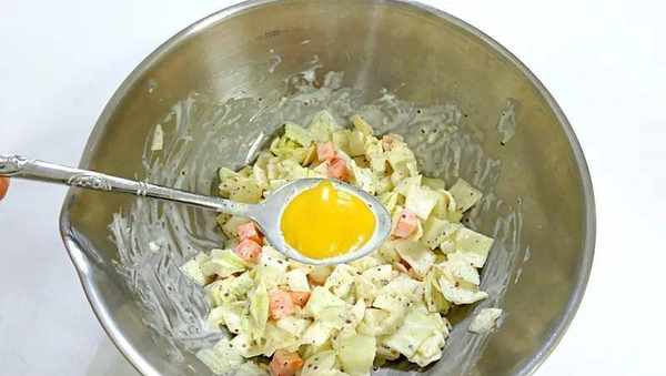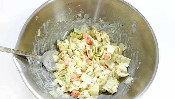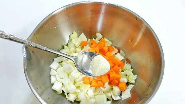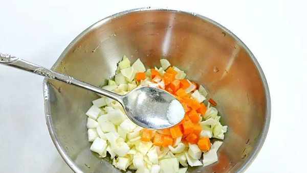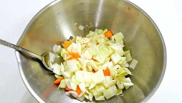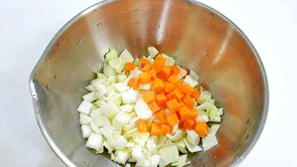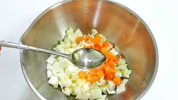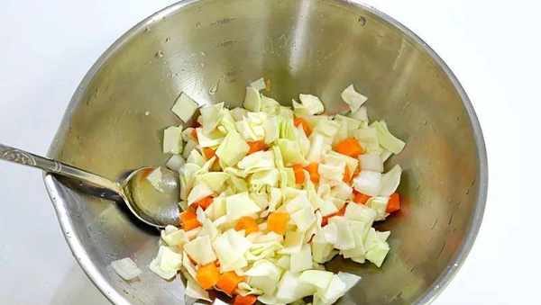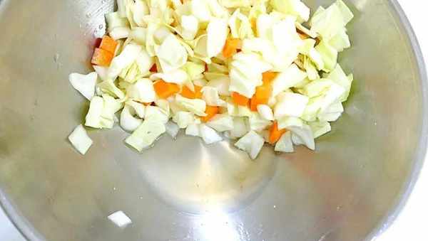將卷心菜、胡蘿卜和洋蔥放入碗中