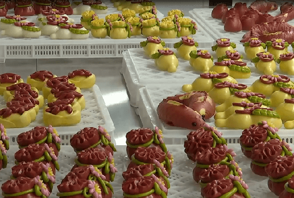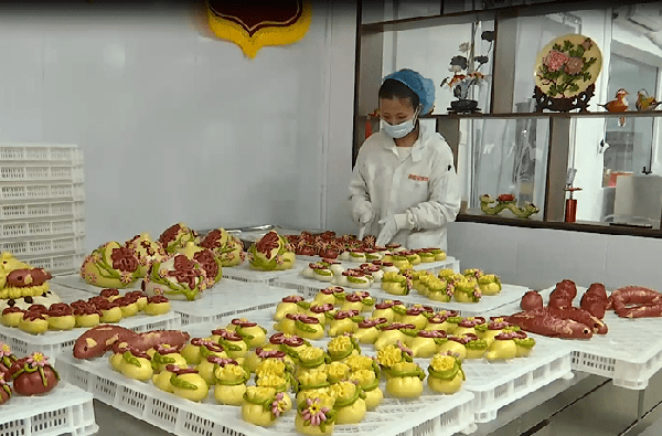 到目前為止,基本上能保持一天500單以上。”“面食文化同樣魅力四射”。張東芹現場制作以“高密花餑餑”為代表的花樣面食的視頻,在抖音等直播平臺上的熱播,吸引著來自新疆、內蒙等全國各地的傢庭婦女,紛紛慕名前來跟張東芹學習花樣面食制作技藝。學習面花制作技藝的泰安市學徒工張雯說:“ 張老師做的花饃品種比較多,做的花樣也非常好看,於是我就來張老師這兒學習。經過10多天的學習,我已經學會瞭10多樣面點的花樣,再有10多天我就學習完成瞭,我要回到自己的城市,開一個屬於自己的門店。”