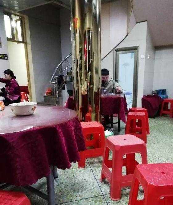 走進店內橘白色燈光下,還有兩個人在吃牛肉面,他們分別在正中央和亮晶晶瓷磚旁,靜靜地環境下,邊吃邊刷刷手機,吃得有滋有味的。