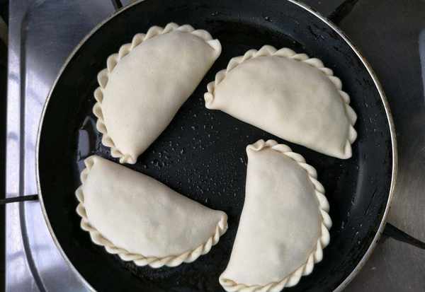步驟七:起鍋刷油,然後把韭菜盒子放到鍋中開始煎,煎到兩面金黃的程度就可以出鍋瞭。