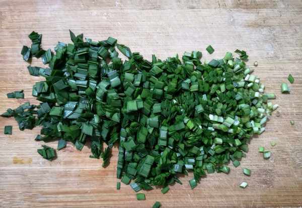 步驟二:韭菜是一定要選擇新鮮的,這樣才能夠有好的氣質,不要選擇太粗大的,清洗幹凈之後切成小段,這樣容易讓韭菜的氣質完全的釋放出來。雞蛋直接打散到碗裡,然後加入適量的鹽攪拌均勻。