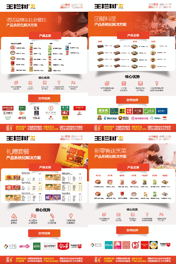 本次展會,王欄樹®食品以“經驗共享·合作共贏”為出發點,呈現出瞭全新升級的品牌理念與更完善的產品體系,為酒店宴席、團餐料理、禮贈套餐、新零售速烹菜等不同渠道,致力為客戶定制化打造: