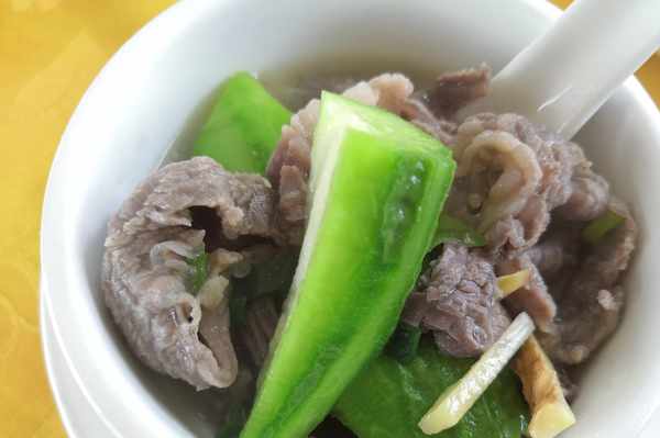 1,絲瓜清湯浸牛肉。選擇牛肉帶肥的部位,把牛肉簡單的醃制後,放入滾開的絲瓜湯中,停火上桌,就利用絲瓜湯的餘溫浸熟牛肉。味覺中絲瓜清甜爽口,牛肉嫩滑有味。