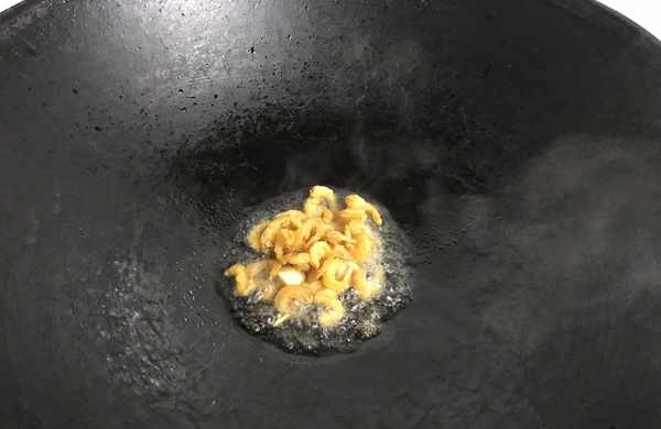 5、鍋中倒入適量油,放入大蒜煸出香味,把海米放入鍋中。