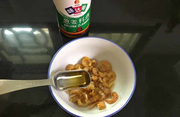2、海米提前用溫水加料酒浸泡一下,加適量料酒可去腥味,浸泡好後的海米洗凈瀝幹水分。