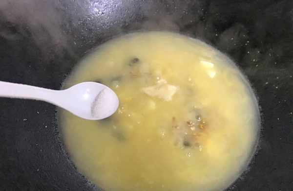 8、大火煮至湯汁發白,加入適量鹽調味。