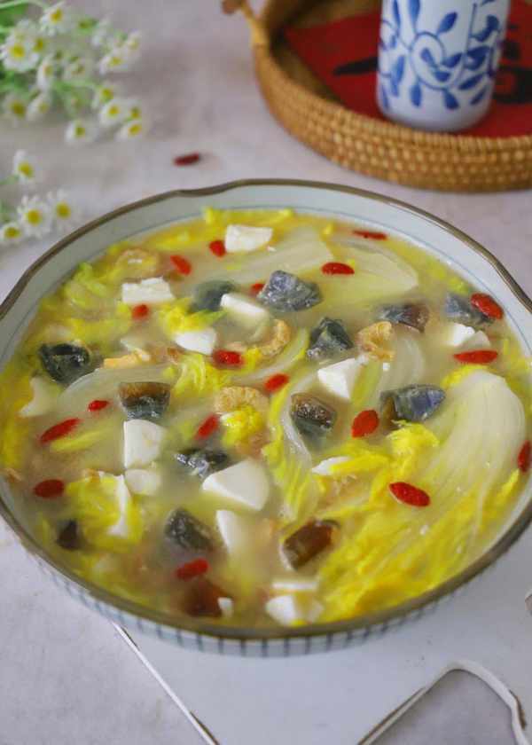 海米也就是幹的蝦仁,也叫蝦米,一般就是用白蝦,紅蝦等海蝦,加鹽蒸煮,晾曬後去殼而成,食用前加水浸泡軟,味道鮮美,營養豐富,是人們餐桌上不可多得的美味佳肴,煎,炒,蒸,煮都可。海蝦米的營養非常高,微量元素很豐富,尤其是鈣和蛋白質,每100克海蝦米含蛋白質58.1克,鈣577毫克,比雞蛋和牛奶要多幾十倍,還有多種維生素,因此被列入海八珍之一。今天的這道小湯娃娃菜就是用皮蛋,咸鴨蛋和海米三種食材煮出來的,非常鮮美,而且一點也不油膩,適合春天喝,做法當然也不難,一起來看看吧!