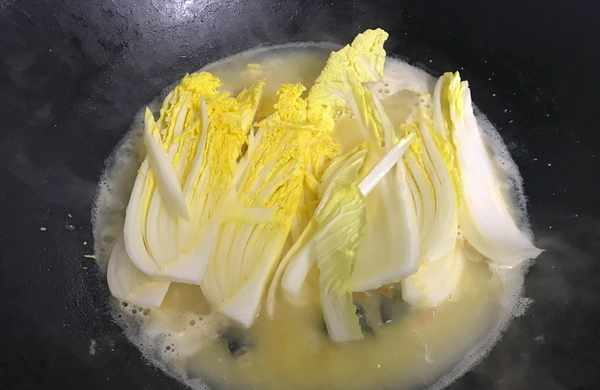 9、把準備好的娃娃菜放入鍋中,煮至變軟。