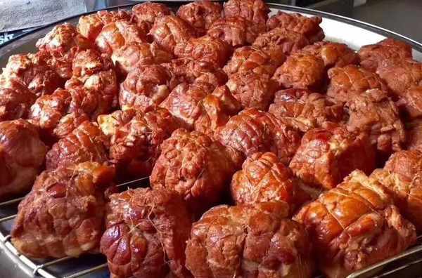 它用柏木熏制而成,營養豐富,吃起來口感肥而不膩,皮爛肉嫩,味道絕美,有機會來的朋友千萬不要錯過!