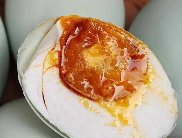 它蛋心是紅色的,營養非常豐富,切開後蛋油流淌,蛋清和蛋黃,紅白分明。吃上一口不咸不淡,非常適口。