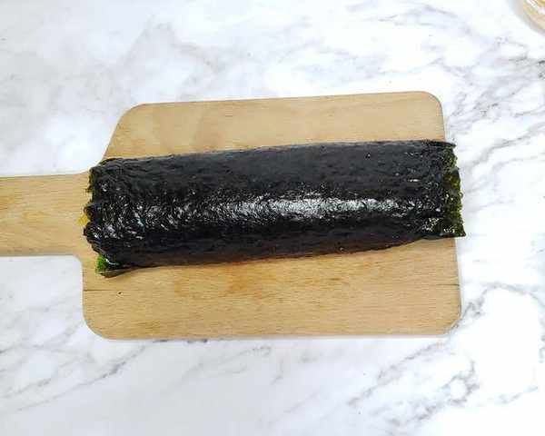 步驟六:卷好之後可以用米飯粒黏住兩頭。