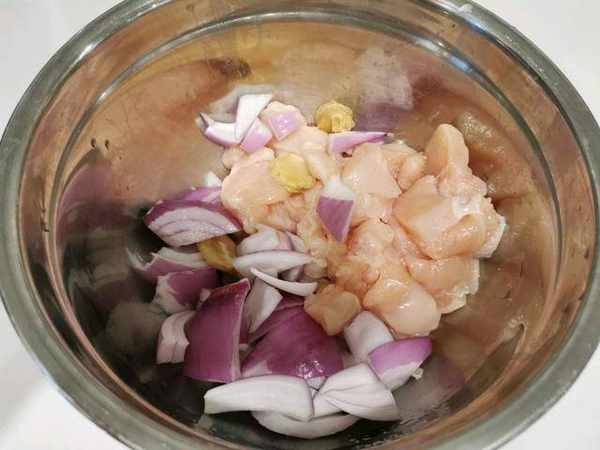 步驟一:先把所有的食材都給準備好,尤其是調味料一定要準備齊全才行。然後用攪拌機把食材都給攪碎。