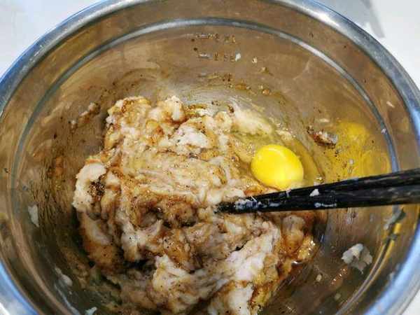 步驟二:放蠔油、黑胡椒、雞蛋一起再攪拌均勻。