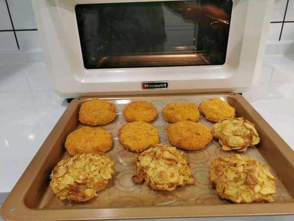 做法是比較簡單的,就是比較繁瑣一些。攪拌的時候要把調味料都放全,這樣才能夠讓做出來的食物味道比較的好。裹蛋液的時候要註意均勻的裹上,面包糠也是一樣,不要太厚,否則烤的時候不容易熟。
