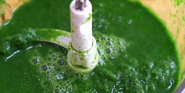 5.取兩團清明菜。大概150克左右。放入絞肉機中,或者料理機中。加入多一點的清水。攪打細膩。