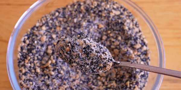 11.做個餡料,花生米炒熟或者烤熟,放入絞肉機中打碎。再加入炒熟的芝麻,最後加入白糖,攪拌均勻就可以瞭。