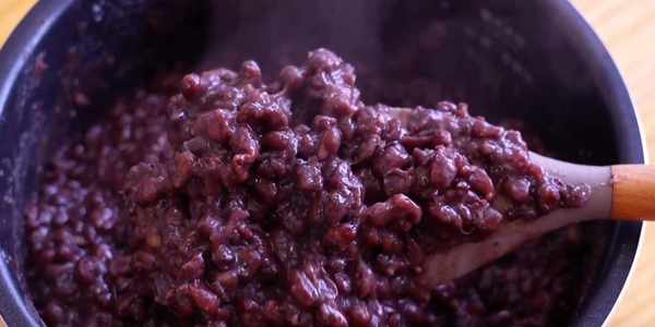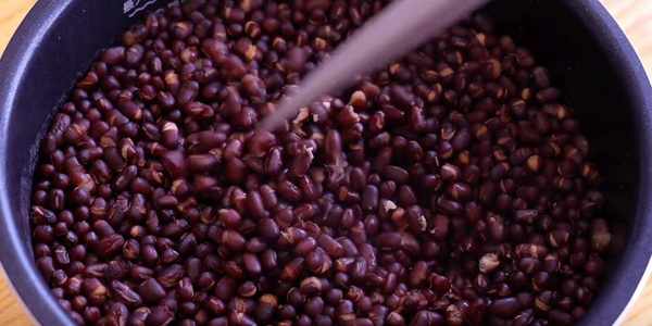 12.紅豆提前泡發,放入電飯煲中,加入平時煮飯的量,開啟按鍵把它煮熟。