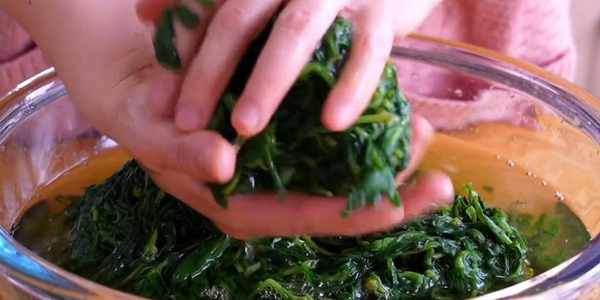 3.出鍋放入冷水中,然後撈出,擠幹水分備。