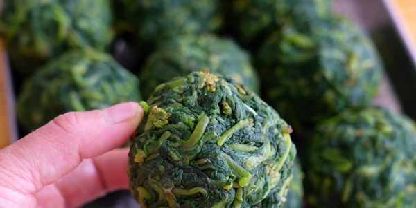 這次分享的是一道免蒸的做法,直接用鍋炒,這個方法比較簡單,時間也比較快,不用擔心不熟。口味一共有四種,經典的花生芝麻餡,還有咸蛋黃肉松餡,芋泥餡,傢常紅豆餡。這四種都非常好吃,全是自己動手做的,不會齁甜,也不油,少油少糖吃著更健康。做這種青團美食最重要的就是顏色翠綠,想要保持顏色鮮艷還是有方法的,加入小蘇打或者堿面就可以,它能很好的保護顏色。