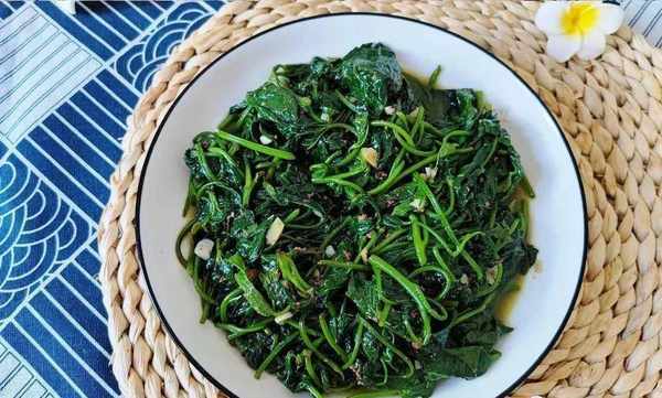 1、在炒紅薯葉時,記得放點料酒進去炒,可以避免紅薯葉發黑,保持翠綠色。炒的時間也不宜過長,大概炒1分鐘就可以關火。