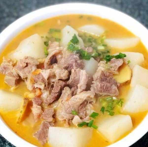 鍋中燒開水下入牛腩燉煮,下入鹵肉料,下入鹽,味素,煮至30分鐘之後,再次下入白蘿卜一起燉煮10分鐘,最後盛出撒上香菜即可。