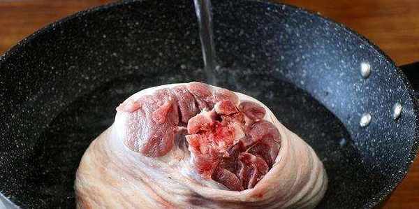 做法:1、豬肘子回來清洗一下,鍋中倒入冷水,豬肘子不用切,一整個放進鍋裡,倒入料酒,燒開撇去浮沫,撈出過一下清水。