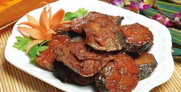 接著把鮁魚塊下鍋,中火燒上15分鐘,最後大火把湯汁收至粘稠,出鍋時撒點五香粉提味,就可以吃瞭,放涼後吃更加的美味,錯過還得等一年。