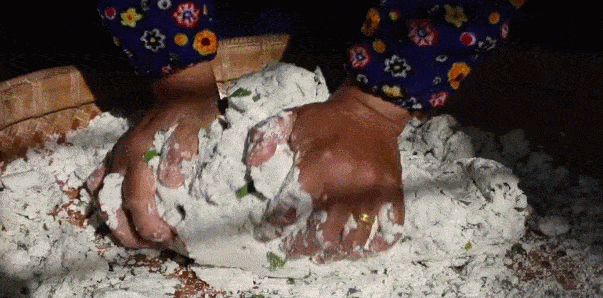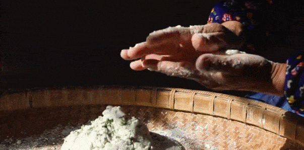 3.反復搓捏,使混合物成團