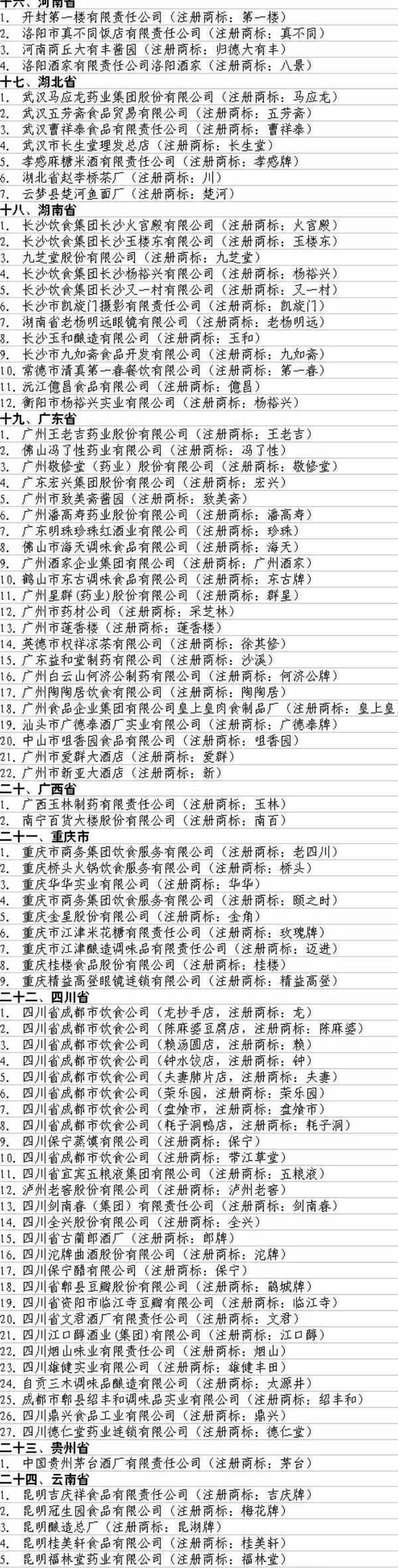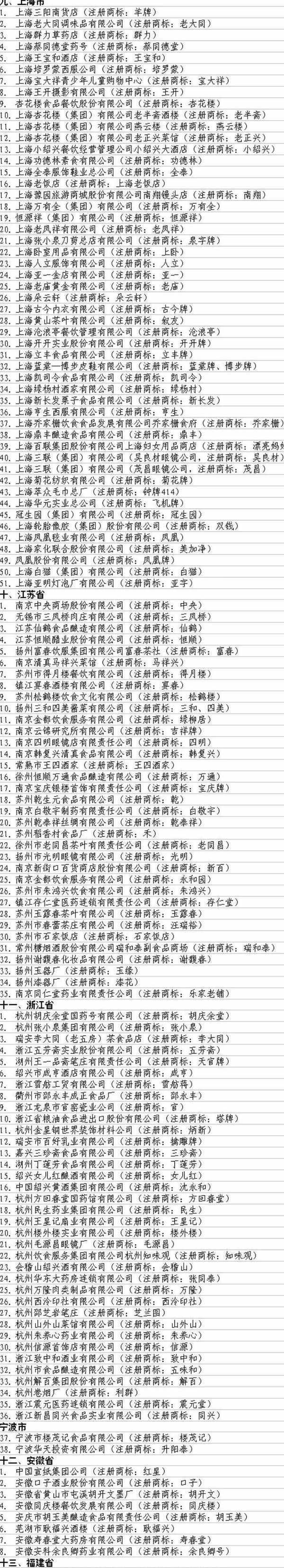 同期的還有許多知名的其他“中華老字號”,基本上涵蓋瞭全國各個地方瞭。