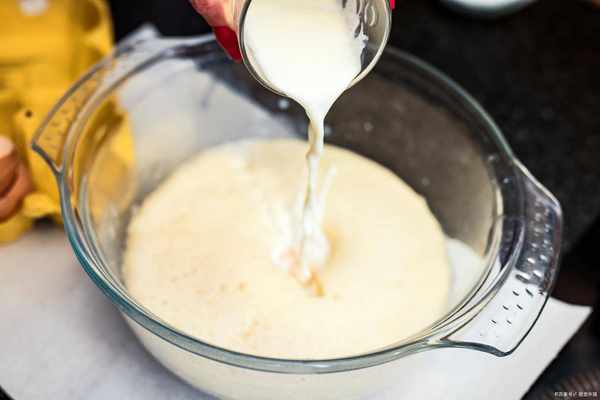 5、然後再分次加入煉乳,也是加一次,都要拌勻一次,不能偷懶,一定要慢慢拌勻。